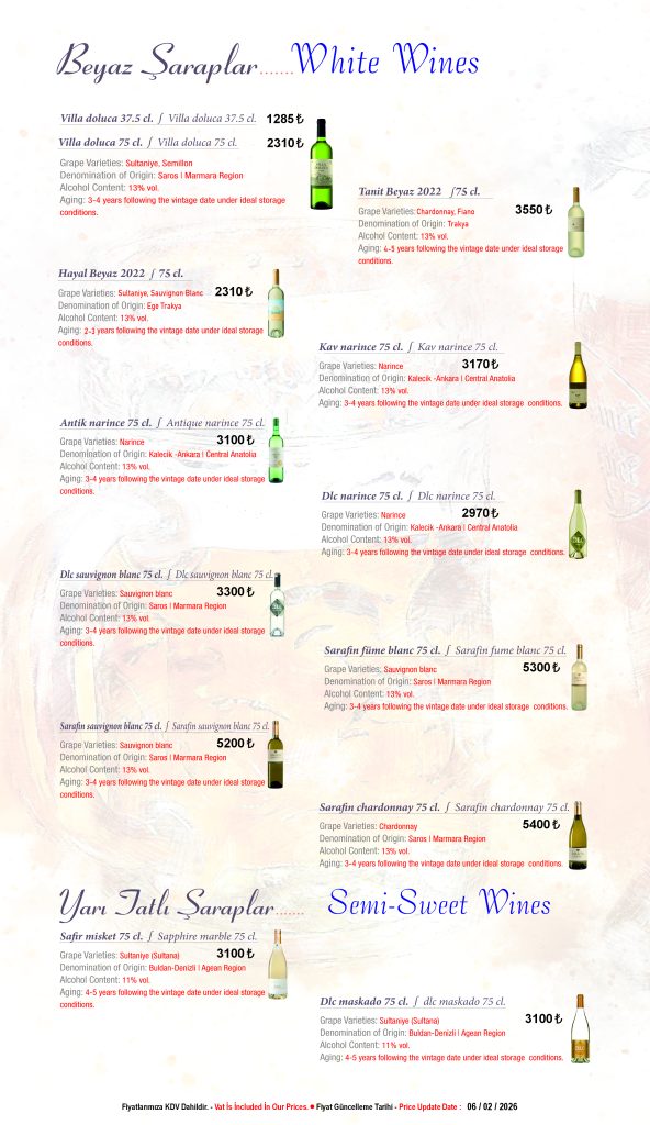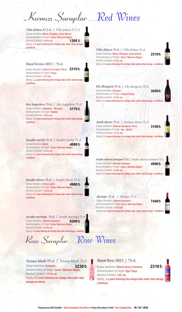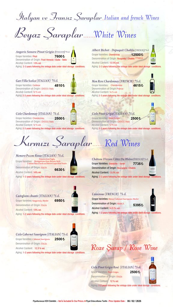 A carefully selected wine list featuring local and international options to complement your dining experience.